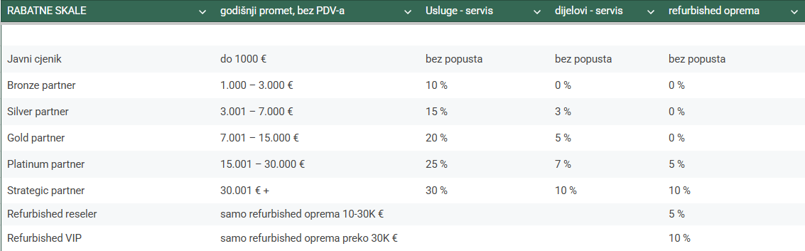 RABATNE SKALE ZA POSLOVNE PARTNERE/CJENIK